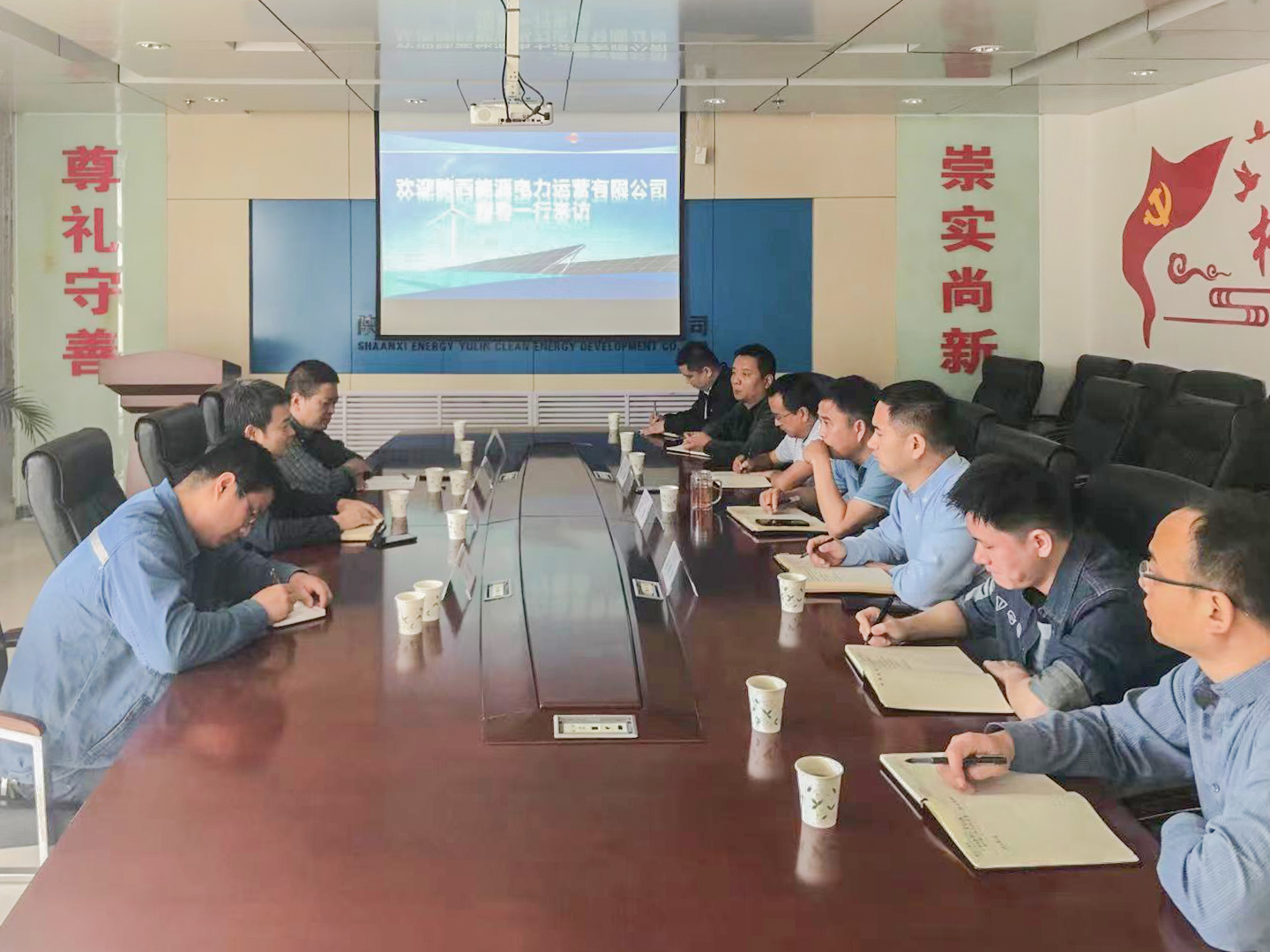 座谈会上,李涛详细介绍了榆林公司在役场站、在建项目及“十四五”发展规划相关情况。雷喜鸣介绍了电力运营基本情况、业务布局及新能源发展方面的规划。双方就新投入风电项目的人员安排、运维检修、电气试验及风机厂家培训等事宜交换了意见,一致认为彼此之间合作前景广阔,未来要加强交流合作,及时沟通,实现优势互补,携手奋进,合作共赢。