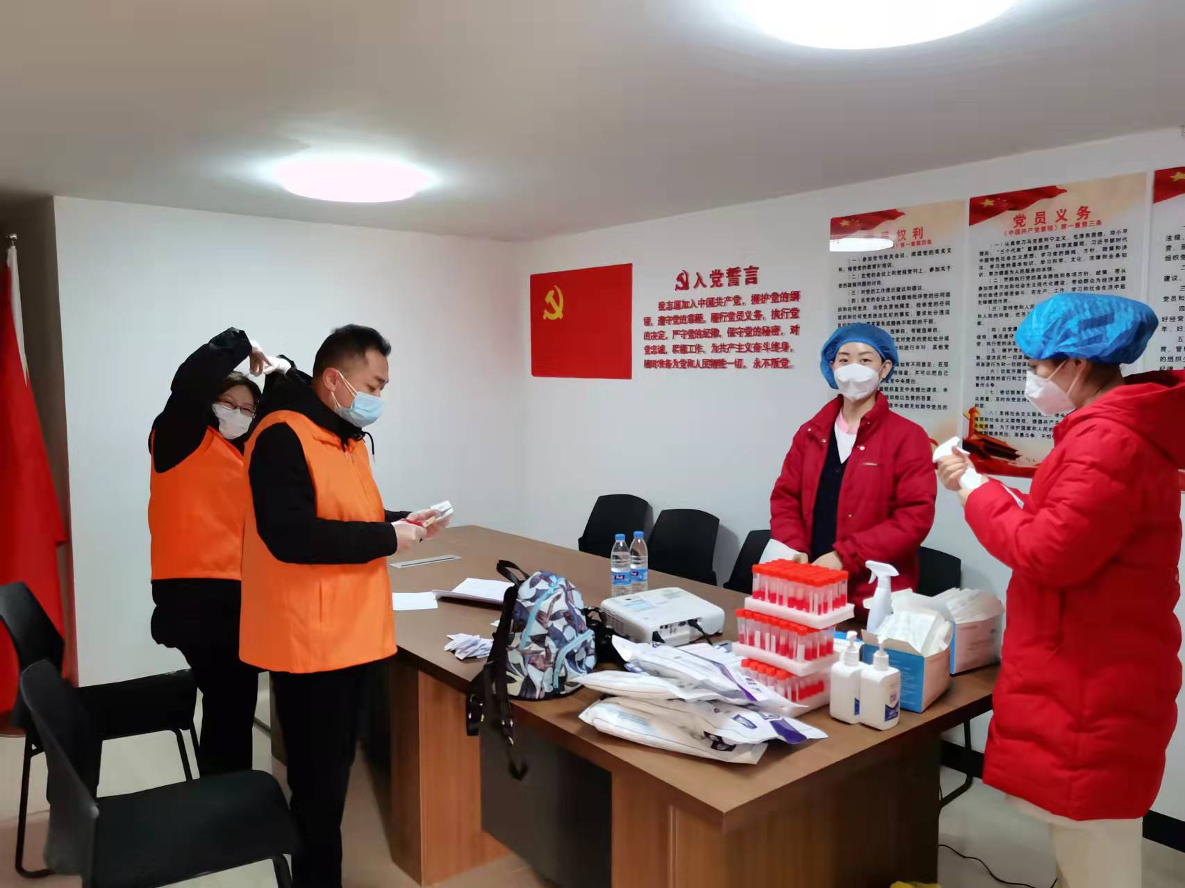 机关党支部号召支部全体党员干部充分发挥“走在前、作表率”的先锋模范作用,党员薛华智积极参与社区疫情防控志愿服务,坚守在社区防疫一线,协助社区组织群众进行核酸检测,以实际行动为党旗增光添彩。各职能部室停工不停岗,离岗不离责,全面开启居家办公模式,确保公司各项工作平稳有序运营。