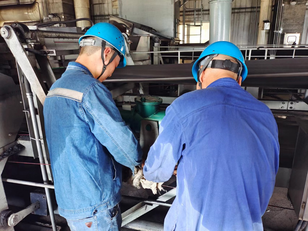入夏以来,商洛项目部全力加强设备隐患排查,实行闭环管理,力争及时将隐患、缺陷消除在萌芽阶段,做到“发现一处,消除一处”,为迎峰度夏打好安全基础。8月2日15:30,机组原灰库分选管道突发严重堵塞,项目部紧急组织人员开展抢修。在气温近50℃的原灰库6米设备间,一股股热浪扑面而来,检修员工敲击管道确定堵塞位置,焊工割孔进行压缩空气吹扫,同时在管道人孔处用力破碎板结积灰。现场工作环境十分恶劣,粉尘浓度大,工作温度高,经过连夜抢修,终于在20:30疏通原灰库分选管道,设备恢复正常运行。
