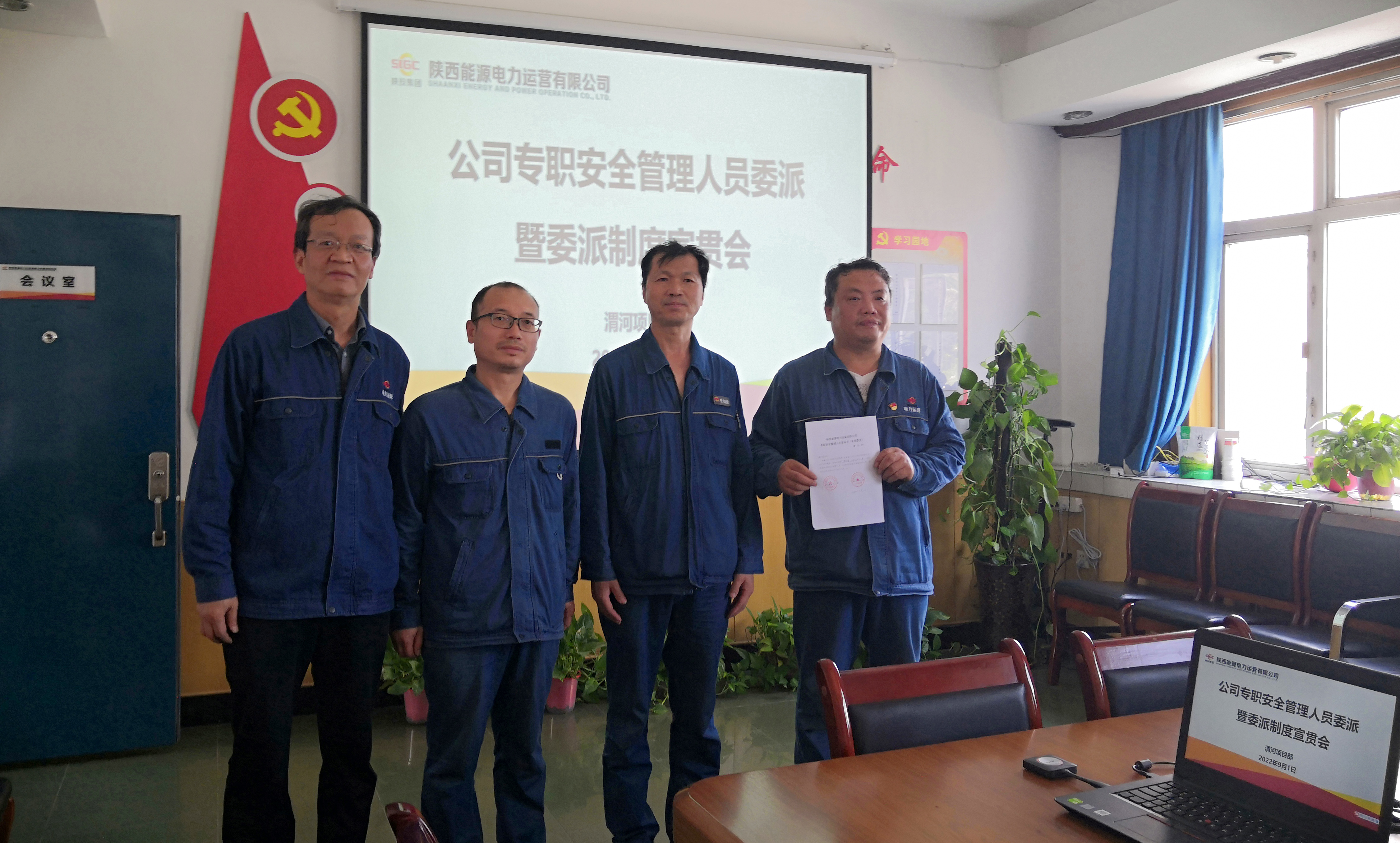 当天,项目部还举行了专职安全员委派仪式,安全副总监陈振峰宣贯了公司《专职安全管理人员委派办法》,并代表公司委派王浩、郭小强为渭河项目部专职安全管理人员。