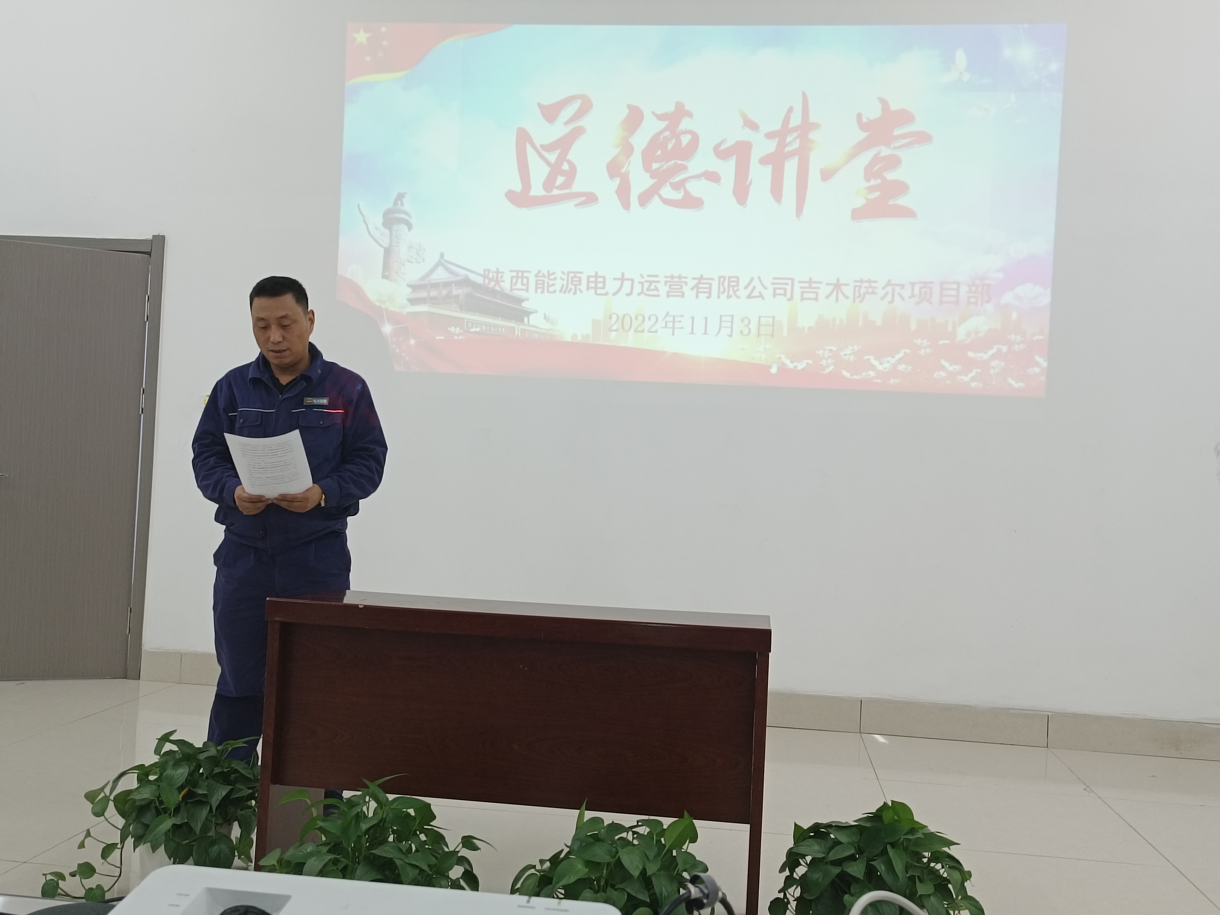11月3日,吉木萨尔项目部开展了“敬业奉献”主题道德讲堂活动。本次道德讲堂共分为自我反省、同唱经典、观看视频、论语赏析、模范宣讲和总结点评六个环节。