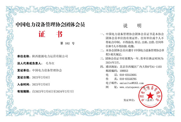 日前,公司收到中国电力设备管理协会颁发的会员证书,正式成为协会一员。