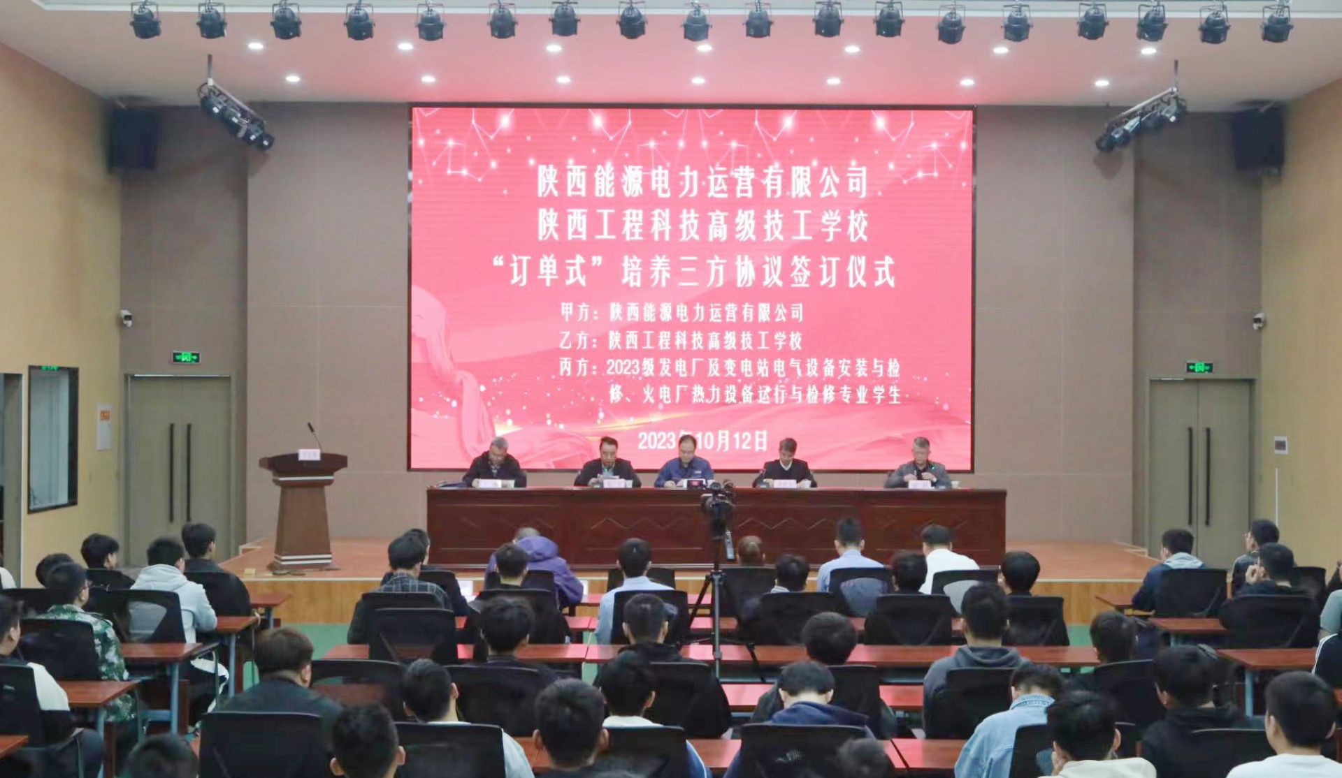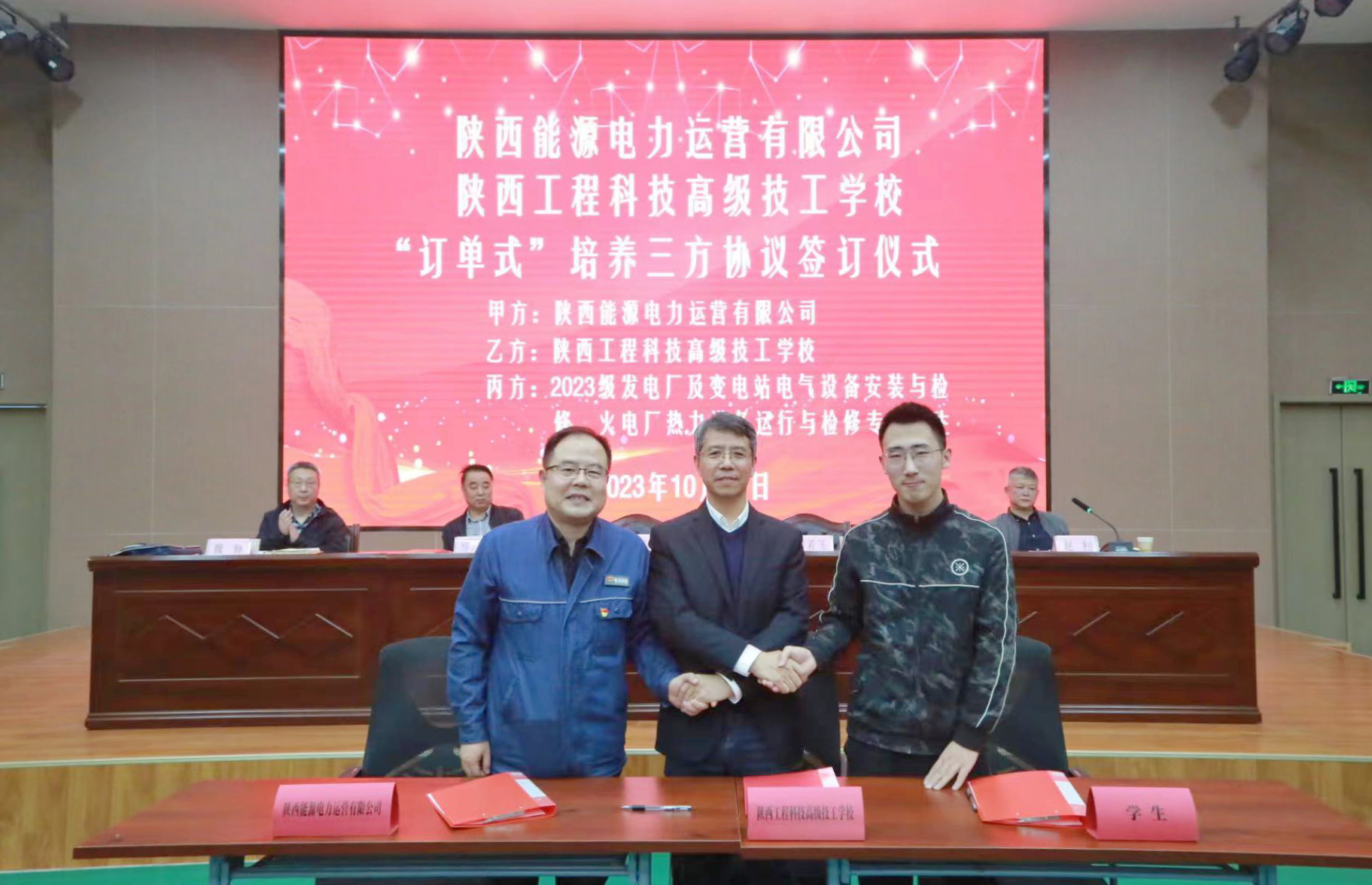10月12日,公司与陕西工程高级技工学校举办电力运营《“订单式培养”三方协议》签字仪式。公司党委书记、董事长毛冬红,陕西工程高级技工学校党委负责人、校长李若飞及教职工代表、学生共计120余人参加,仪式由陕西工程高级技工学校副校长赵利主持。