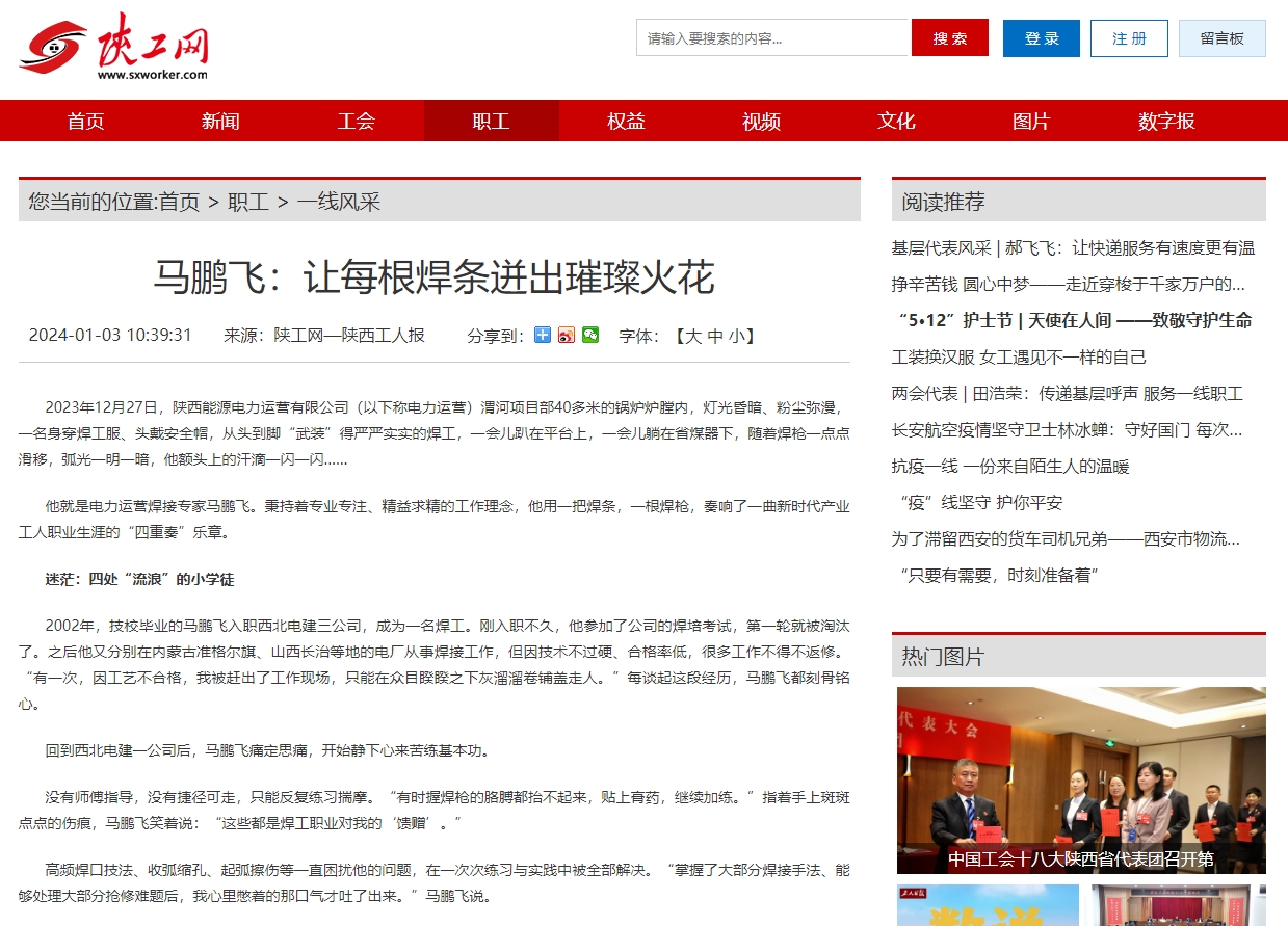 他就是电力运营焊接专家马鹏飞。秉持着专业专注、精益求精的工作理念,他用一把焊条,一根焊枪,奏响了一曲新时代产业工人职业生涯的“四重奏”乐章。