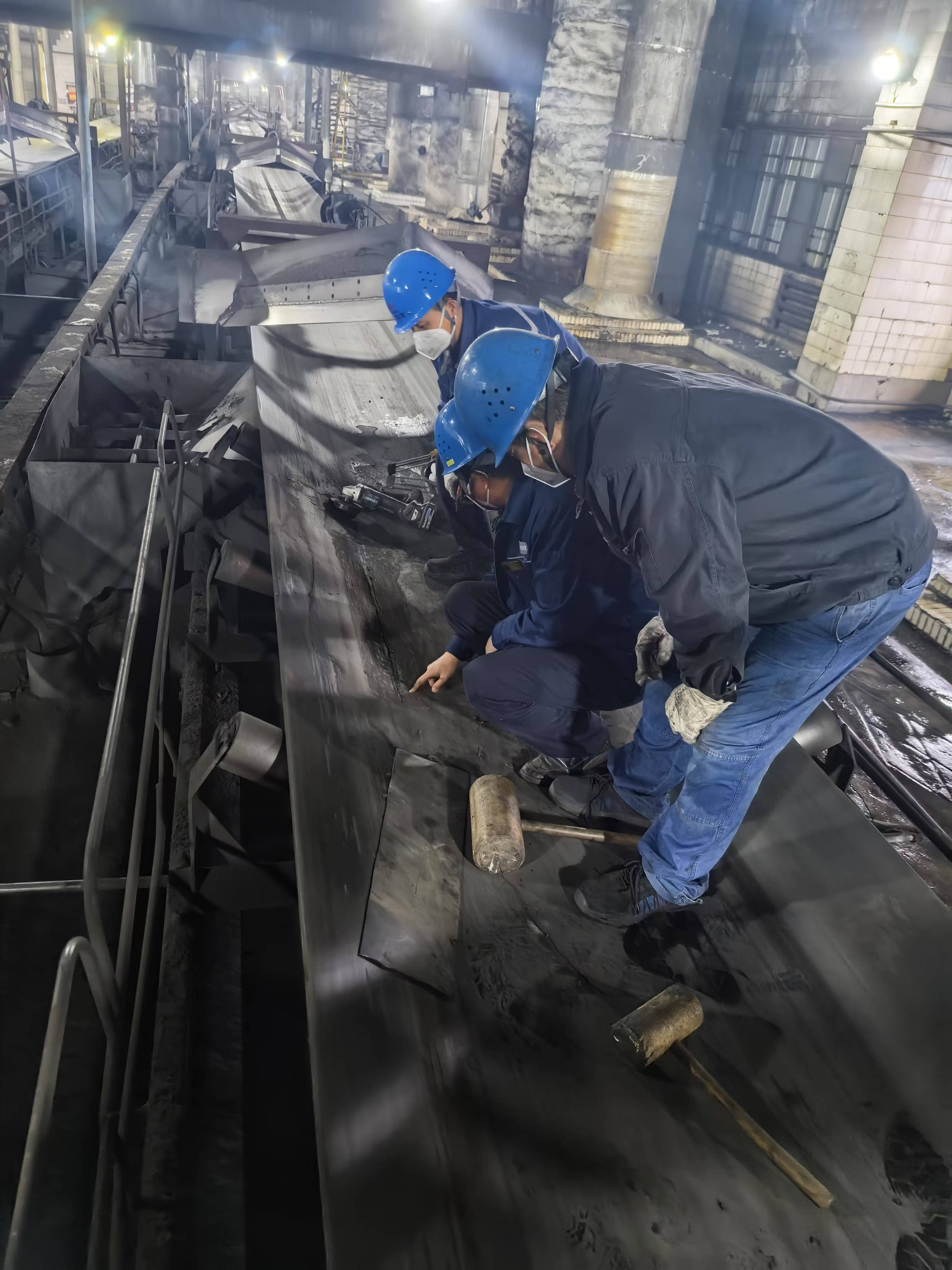 12:20,#5甲皮带投运正常,杨黎明才一瘸一拐地和他的“裁缝”团队走出现场。