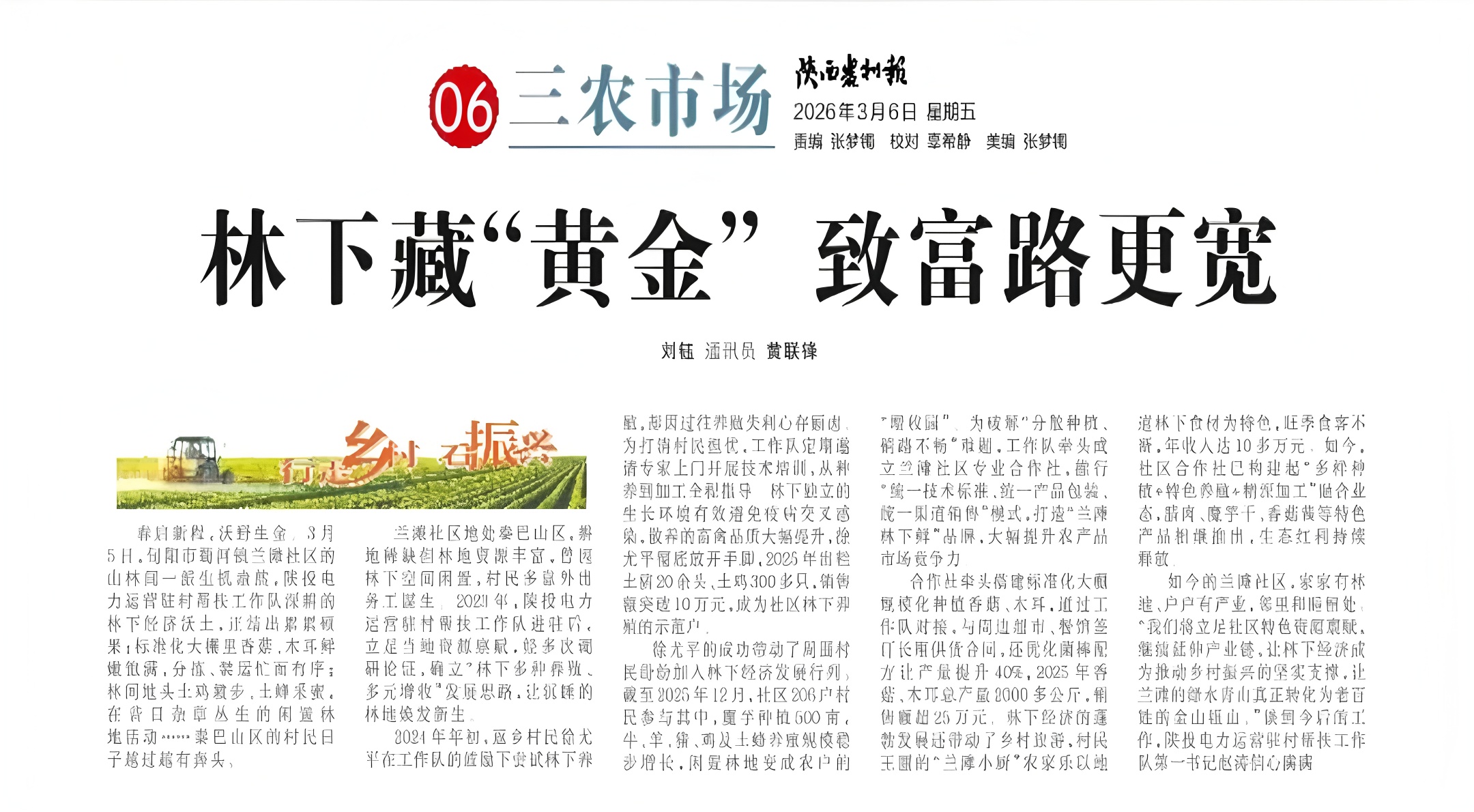 春启新程,沃野生金。3月5日,安康旬阳市蜀河镇兰滩社区的山林间一派生机盎然,公司驻村帮扶工作队深耕出的林下经济沃土,正结出累累致富硕果:标准化大棚里香菇木耳鲜嫩饱满,分拣装运忙而有序;林间地头土鸡踱步、土蜂采蜜,昔日杂草丛生的闲置林地……让秦巴山区的村民日子越过越有奔头。