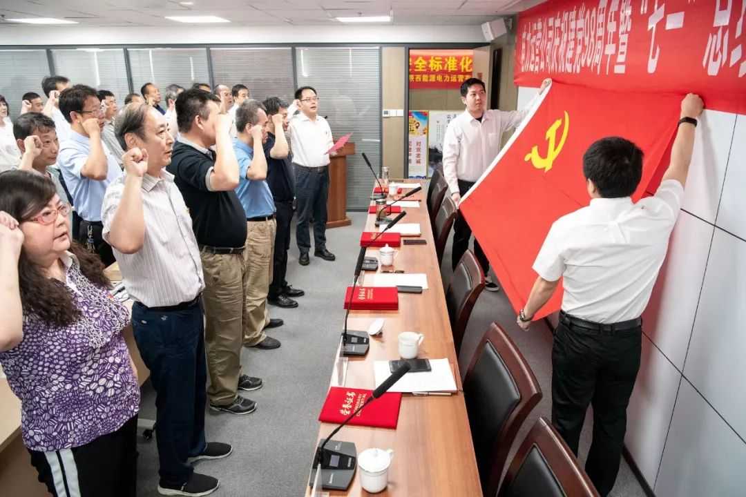 集体宣誓环节,全体共产党员着装整齐,佩戴党徽,举起右拳,在公司党委书记毛冬红的带领下,重温入党誓词,向着鲜红的党旗庄严宣誓。铮铮誓言,拳拳我心,更加坚定了大家不忘初心使命,永立时代潮头的信念。