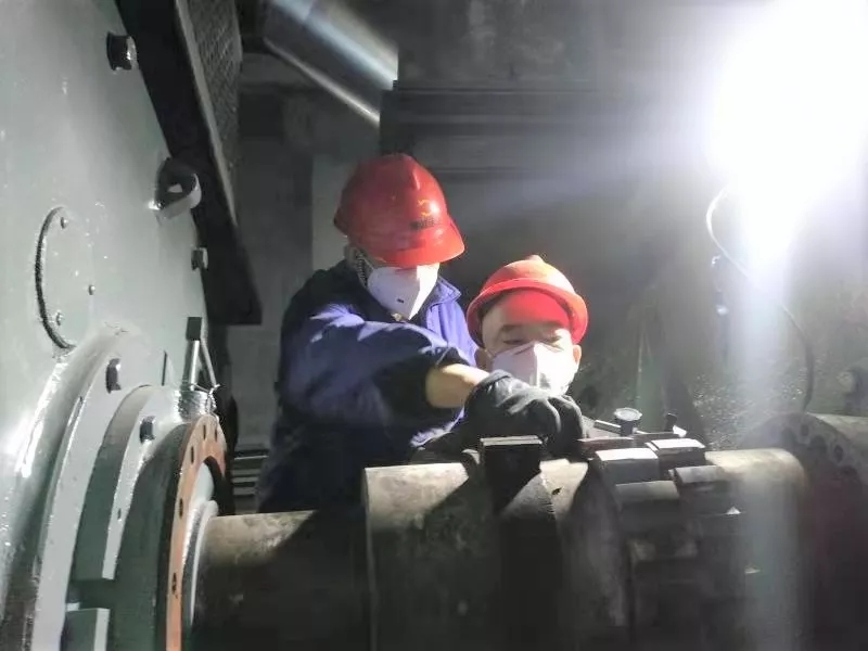 2月3日16:20,我在#5炉检修现场,支援丁磨煤机抢修工作。——渭河项目部机务队主机班班长詹泾永