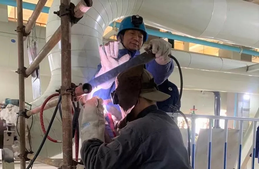到达当天,全部人员马不停蹄,即刻投入到紧张的检修工作中。此次#1号机组的临修,任务重、项目繁杂,除氧器取样门焊口、炉送风机供气母节漏点焊补、石膏旋流渗流管焊接……一项任务都是难啃的“硬骨头”,每一项工作都需要和多个专业协同进行,但大家没有一丝懈怠,一直全身心进行工作,即使春节期间也没有停工,每一名工作人员始终兢兢业业,从预热、焊接、到热处理、射线检测,每一个环节都做得一丝不苟、每一道工序都力求做到精益求精。