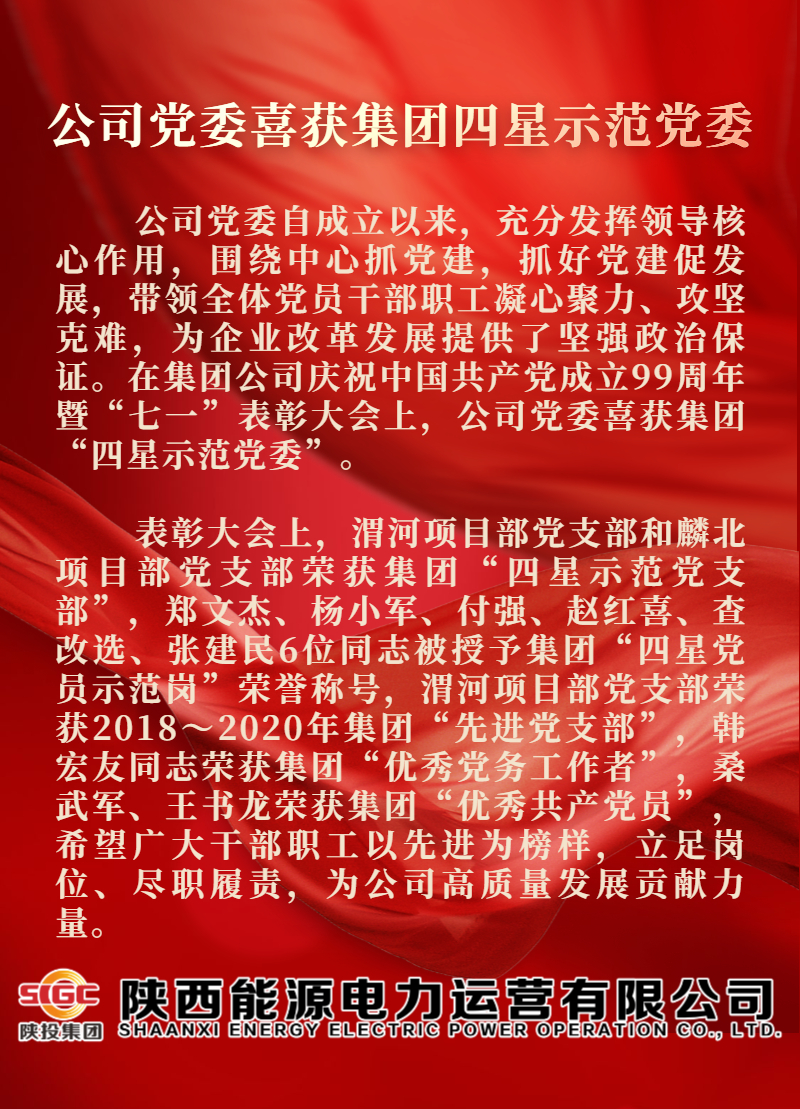 公司党委喜获集团“四星示范党委”